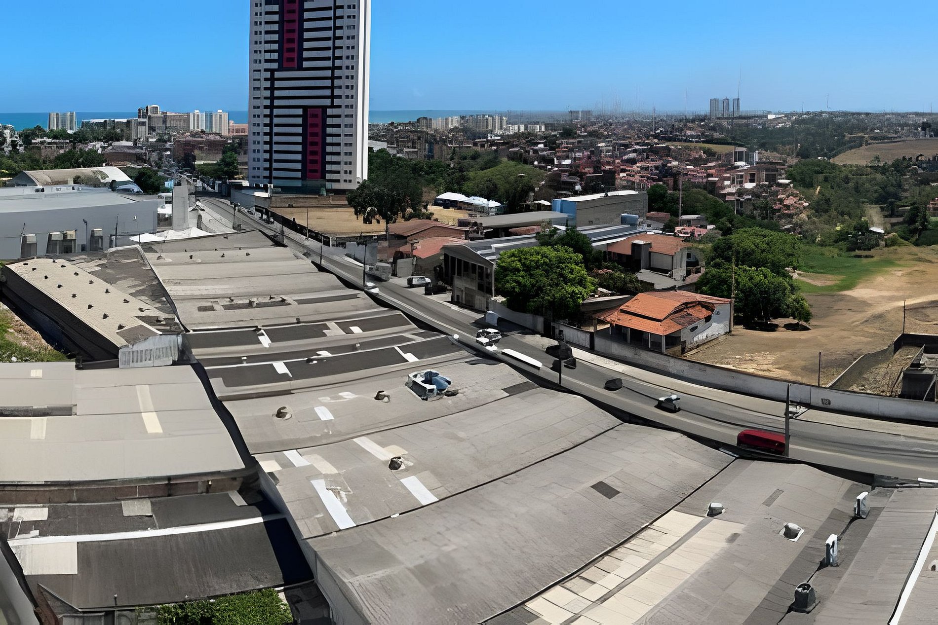 O edifício está posicionado próximo ao encontro de duas grandes avenidas: a Av. Juca Sampaio e a Av. Menino Marcelo (Via Expressa). Isso permite que você escape do trânsito afunilado da orla e chegue rapidamente ao Distrito Industrial, ao Centro, ao Farol e às saídas para o Litoral Norte e Sul.