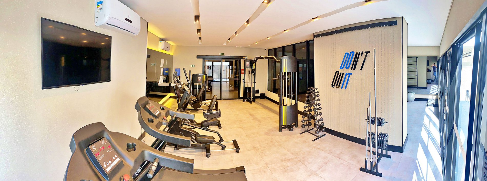 - Academia Profissional: Espaço moderno e climatizado para não quebrar sua rotina de treinos.