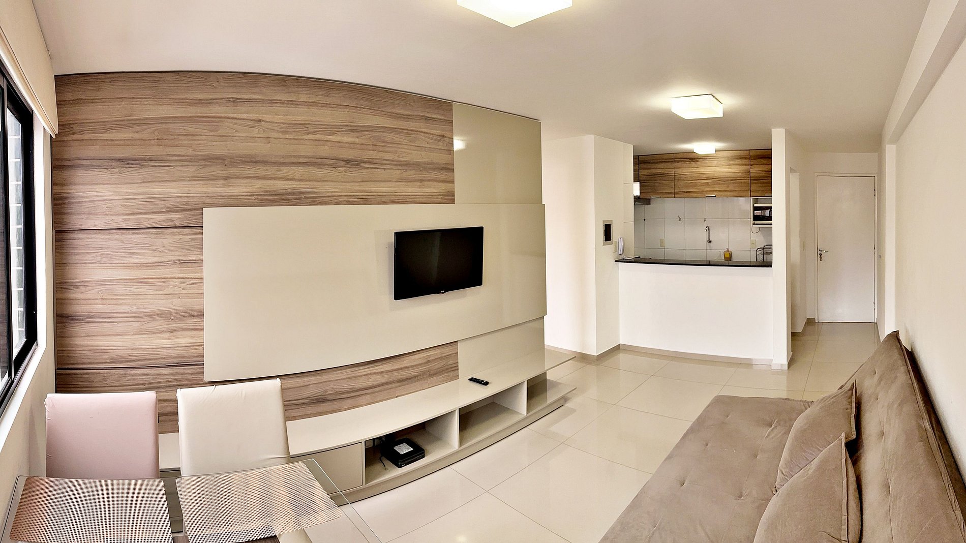 | SALA DE ESTAR | com, sofá, e smart TV conectada na internet com canais local e online. Wi-Fi banda larga. Mesa de jantar com assento para 4 lugares.