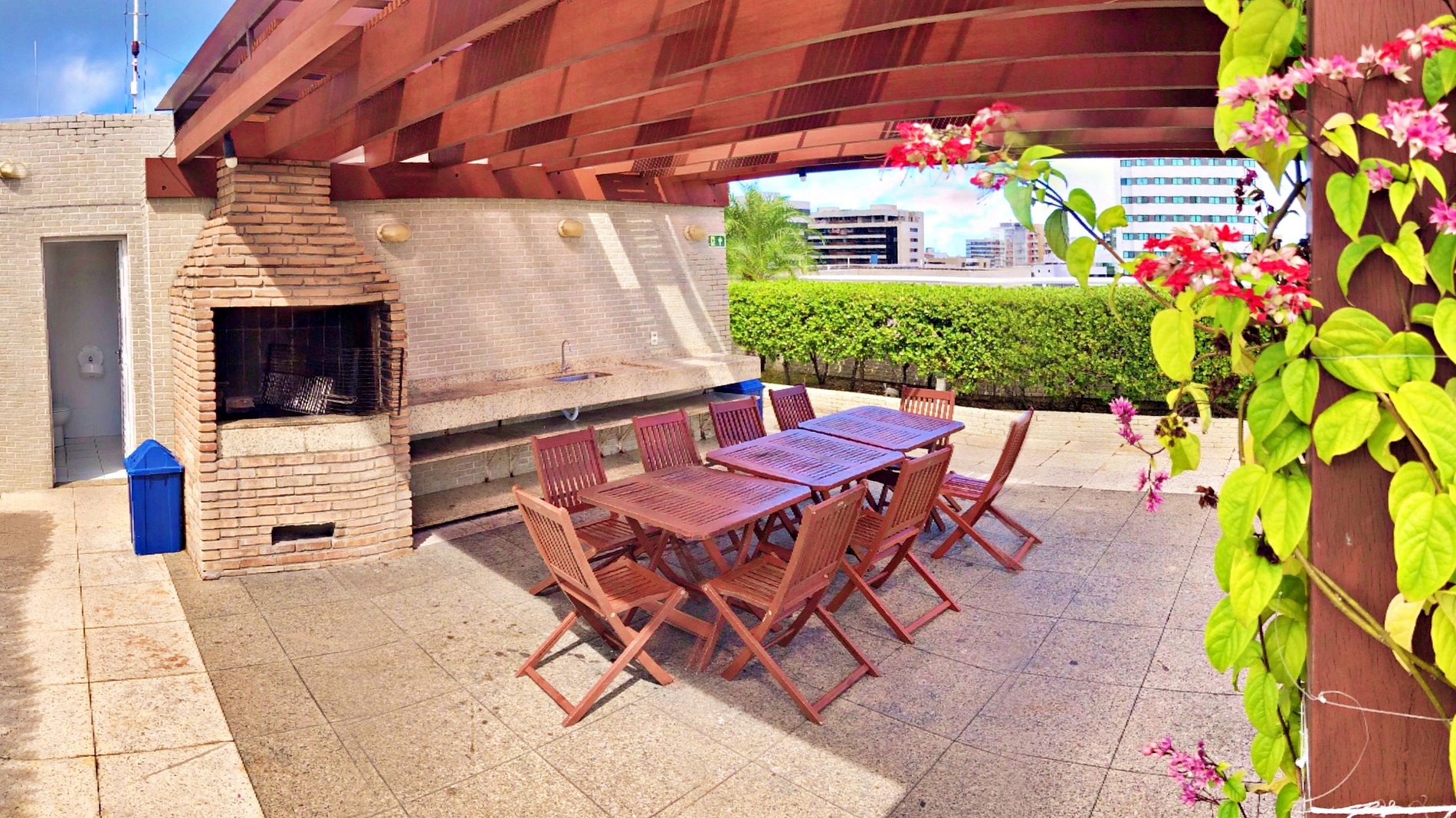 | ÁREA DE LAZER | na cobertura com vista panorâmica do mar da Jatiúca, deck com piscina e chuveirão. Espaço com churrasqueira e e parquinho infantil